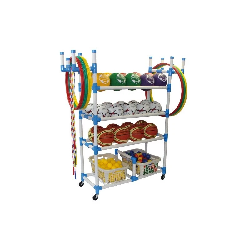 • Stores up to 30 soccer balls plus jump ropes, hoops and other accessories