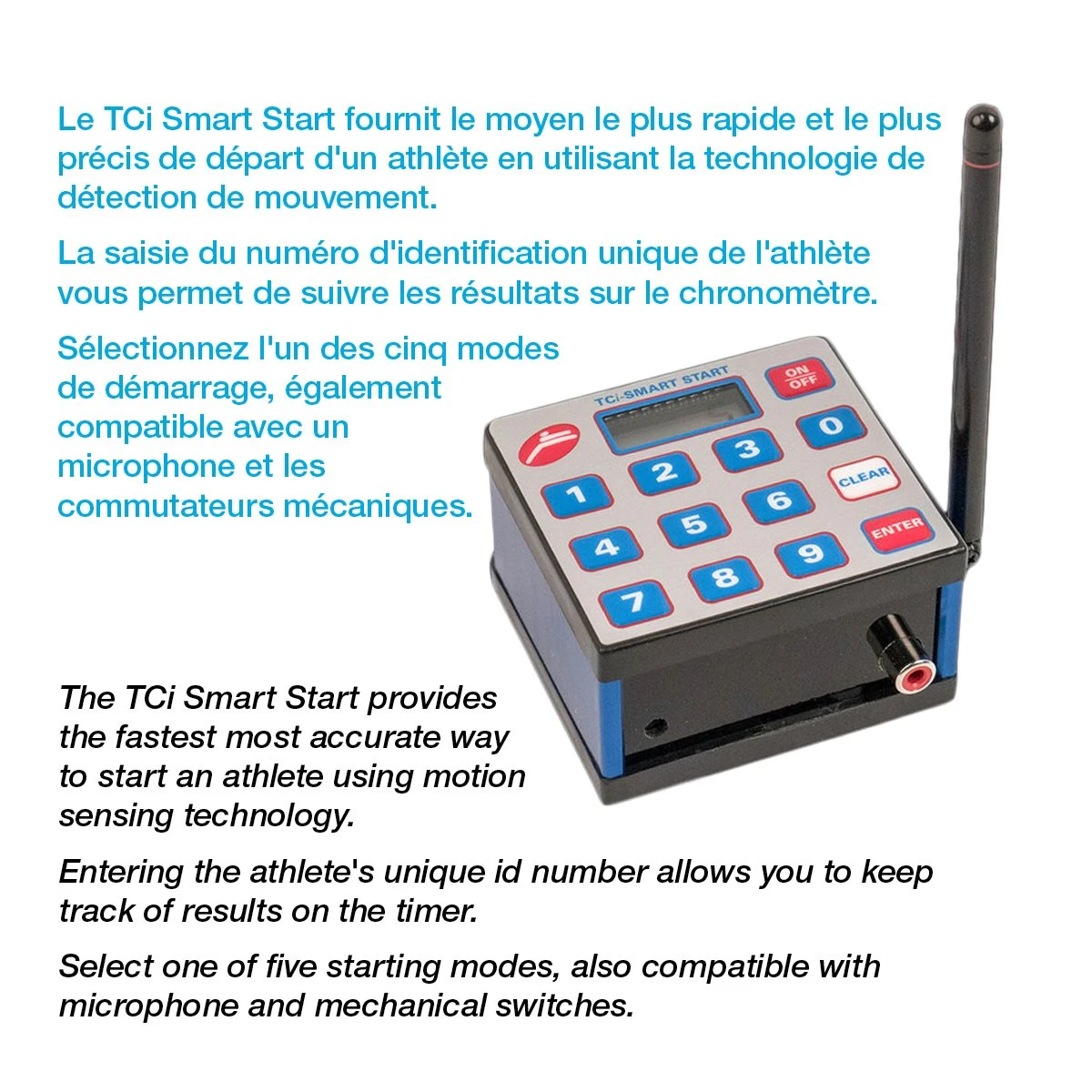 The TCi Smart Start provides the fastest most accurate way to start an athlete using motion sensing technology. Entering the athlete’s unique id number allows you to keep track of results on the timer. Select one of five starting modes, also compatible with microphone and mechanical switches.