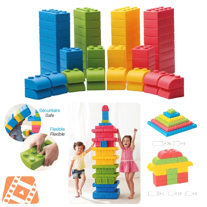 - Square blocks : 16 pièces, 4 of each color (bleu, red, yellow, green)