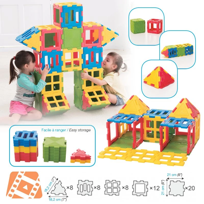 • 8 triangles, 8 rectangular windows, 8 square windows, 12 square and 20 solid squares